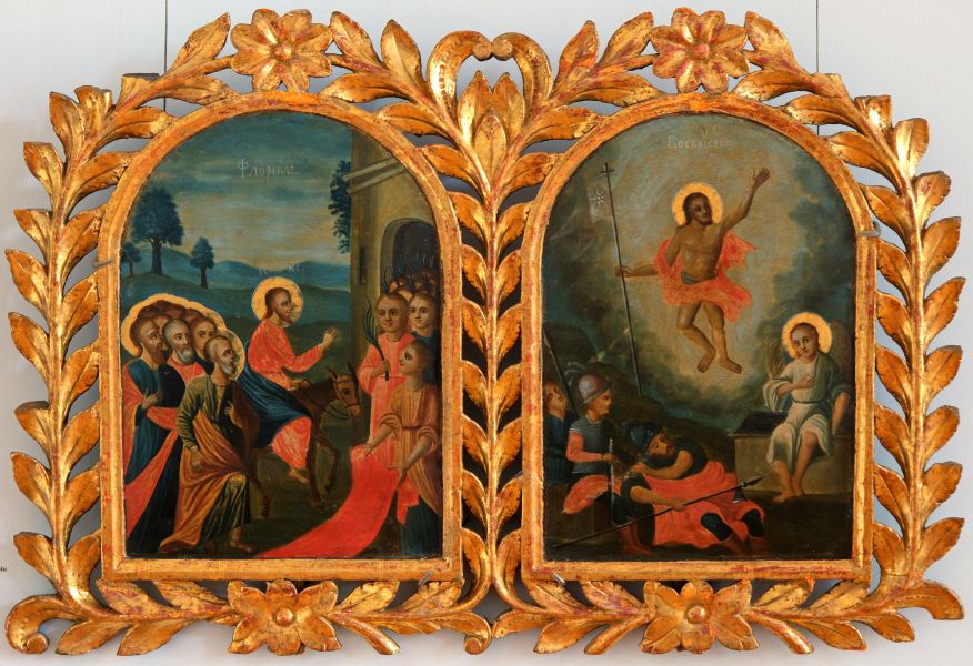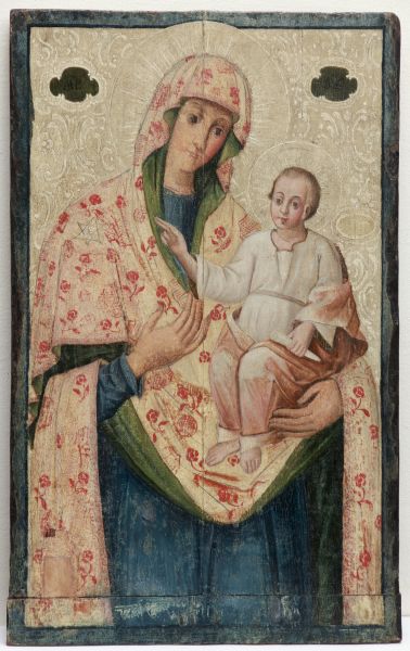 A special place in the religious art of Moldova from the 17th–19th centuries is held by folk icons. One of their particularities is the rustic atmosphere with a vibrant color expression, reduced to a few colors, and the naive treatment of subjects, representing a strict frontal vision of the faces. The earliest naive-style icons include Jesus Pantocrator and Mother of God Hodighitria, dated from the 18th century, from the wooden church of Boroseni village (Edineț).