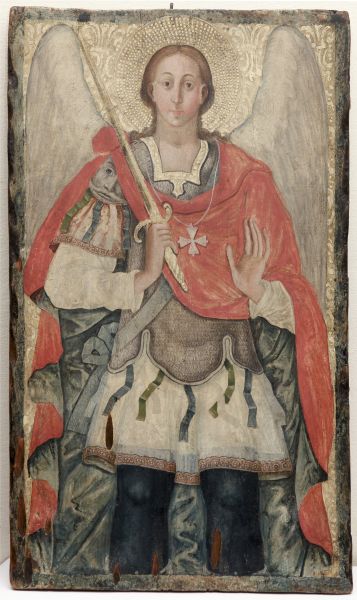 Icons signed by Ioan Iavorschi are notable for the refinement of their drawing and color, emphasized by the texture relief of the surfaces. The icons Jesus Christ on the Throne and Mother of God with Child on the Throne from the St. Nicholas Church in Horodiște are exemplary in this regard. Other icons from the church in Ivancea village (Orhei) – Mother of God with Child (1827) and Archangel Michael (1827) – reveal the stylistic evolution of Ioan Iavorschi. The elements of the icons are in relief, gilded or silvered, with rich decoration and chiaroscuro gradations in the painting of hands and faces, reflecting clear Baroque influence.