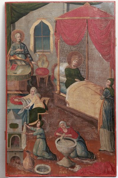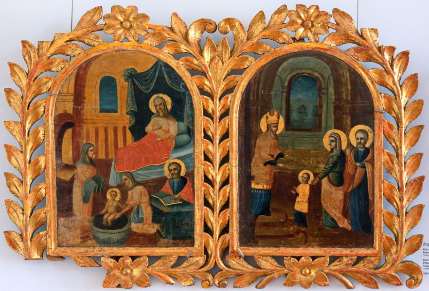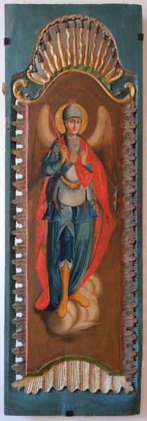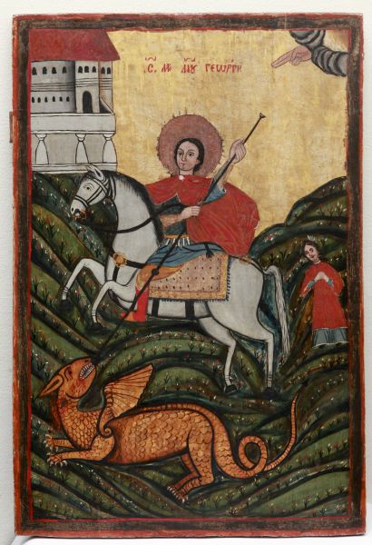 Two other icons of certain artistic value were signed by folk painter Mihail Leontovici: Mother of God with Child Jesus on the Throne (1803) and Saint George Killing the Dragon (1806).