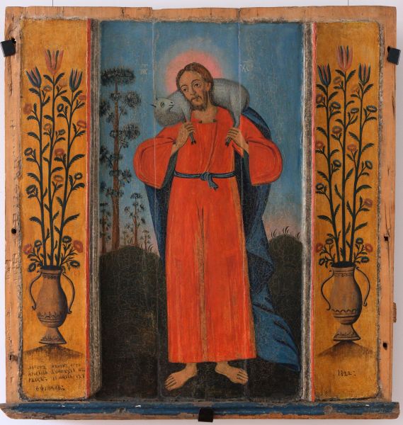 The archaic form and ingenuity of folk painters are also evident in the icons Jacob’s Dream and The Good Shepherd, which represent a direct interpretation of biblical parables.