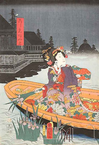 Utagawa Kunisada (1786 - 1864), Japonia, La culesul irisilor. Hartie, xilogravura, 36,4 x 25,2 cm