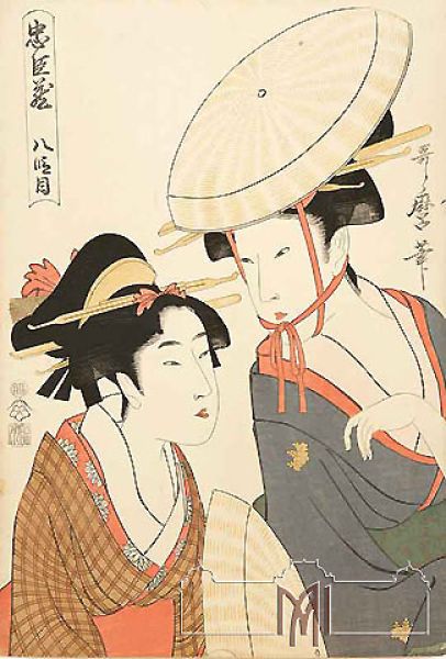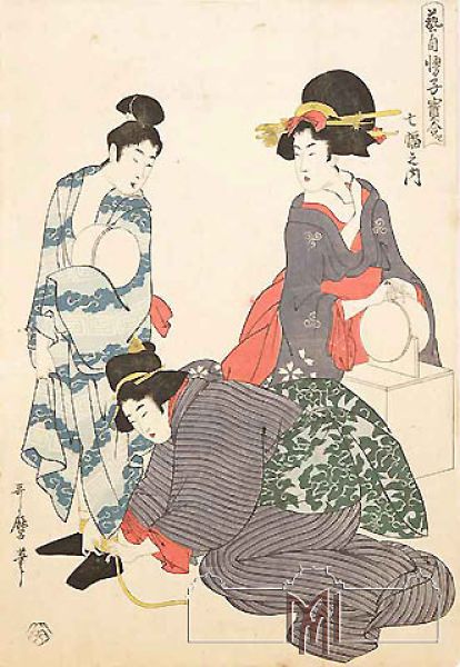 Kitagawa Utamaro (1753-1806), Japonia, Femei frumoase. Hartie, xilogravura, 37,0 x 25,4 cm