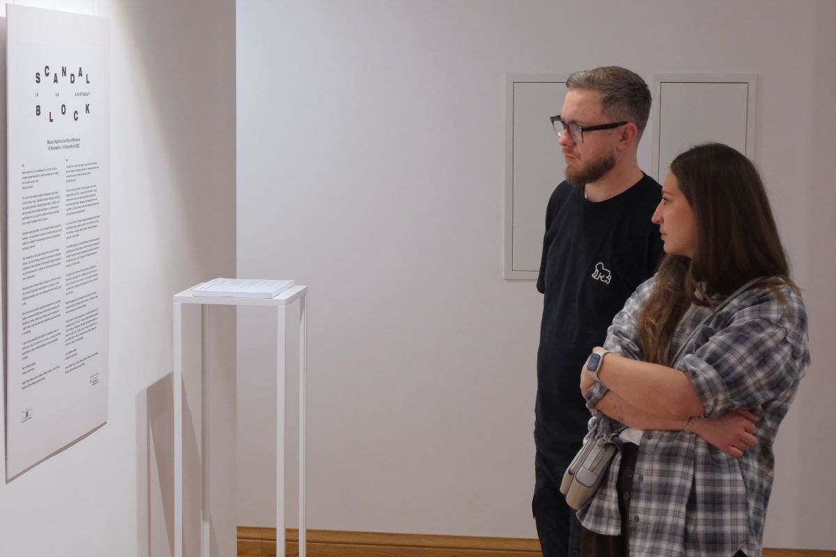 Titlul expoziției, „Scandal într-un bloc locativ”, preluat dintr-o lucrare de Tatiana Cojocaru, una dintre artistele participante, evocă tensiunile și straturile coexistente ale vieții comunitare. El funcționează totodată ca metaforă și ca punct de plecare pentru o reflecție mai amplă asupra ideii de spațiu comun și apartenență.