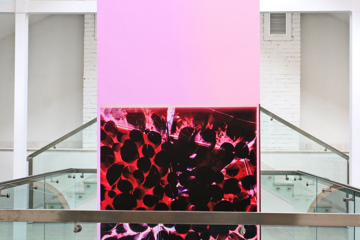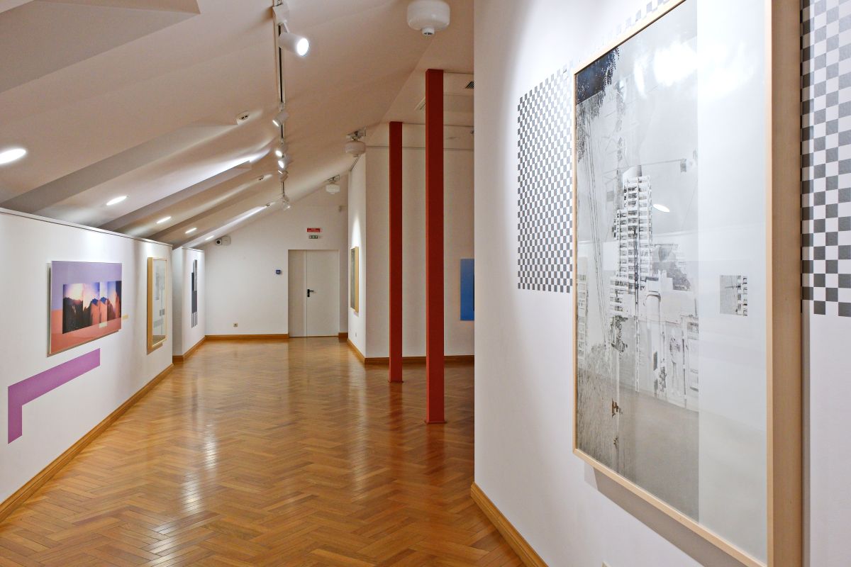 The visual situations created by the artist in the gallery space involve the cohabitation of multiple elements: flat vinyl shapes in chromatic harmony with the photographic images, which in turn are constructed by layering multiple images. This photomontage technique has historical roots in the artistic practices of the Surrealists in the early decades of the 20th century, when the juxtaposition of multiple images aimed to divert the viewer's attention from the real world, projecting them instead into the universe of the subconscious.